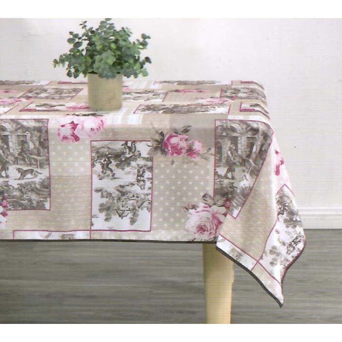 Τραπεζομάντηλο υφασμάτινο Τριαντάφυλλα μπεζ-ροζ 180x150εκ Chios Hellas 19052