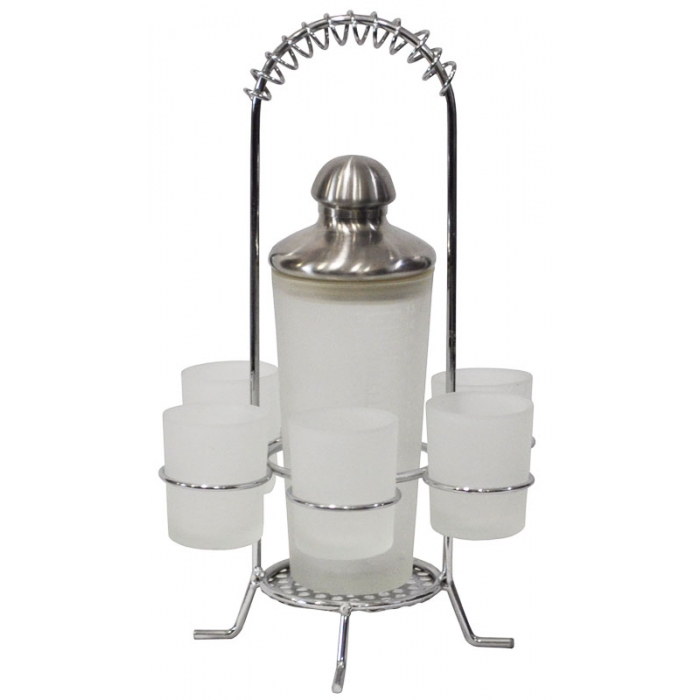 Σετ σέικερ και 6 ποτήρια σφηνάκι γυάλινο-ανοξείδωτο Sinialo 4902180