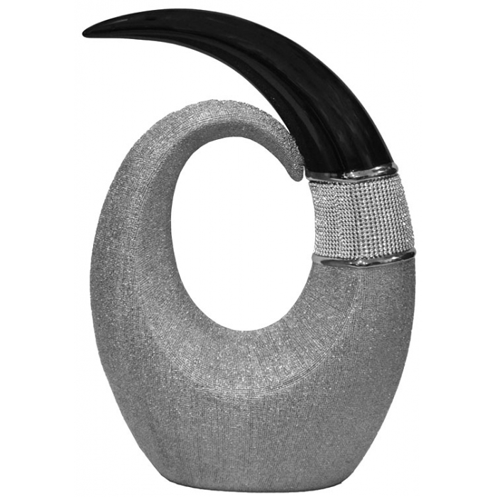Διακοσμητικό κεραμικό Karvounis Σε ασημί χρώμα Με λεπτομέρειες από στρας Διαστάσεις: 15x11x38εκ. ..