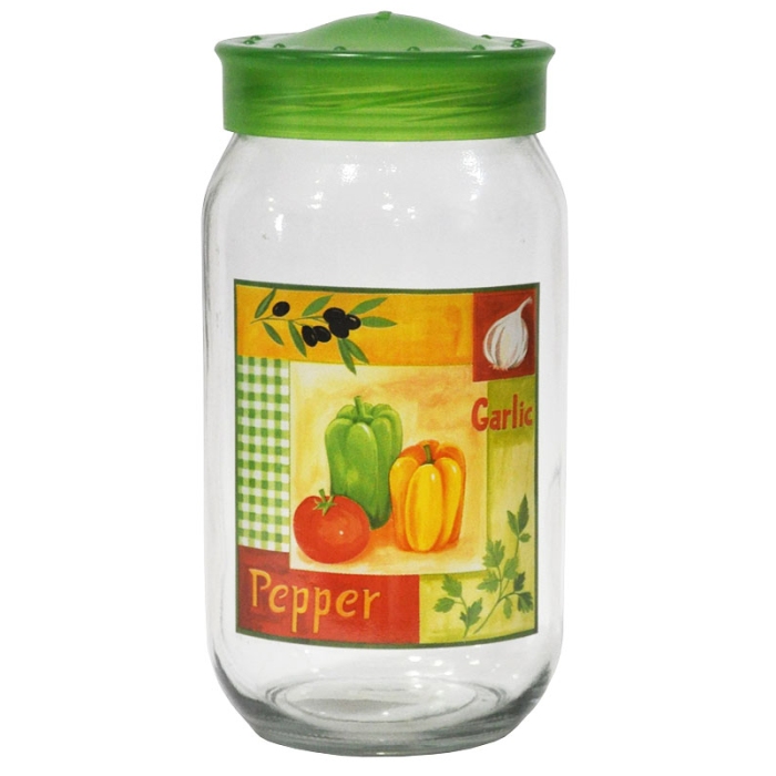 Βάζο αποθήκευσης γυάλινο Πιπεριές διάφανο-πράσινο 1Lt Herevin 131371