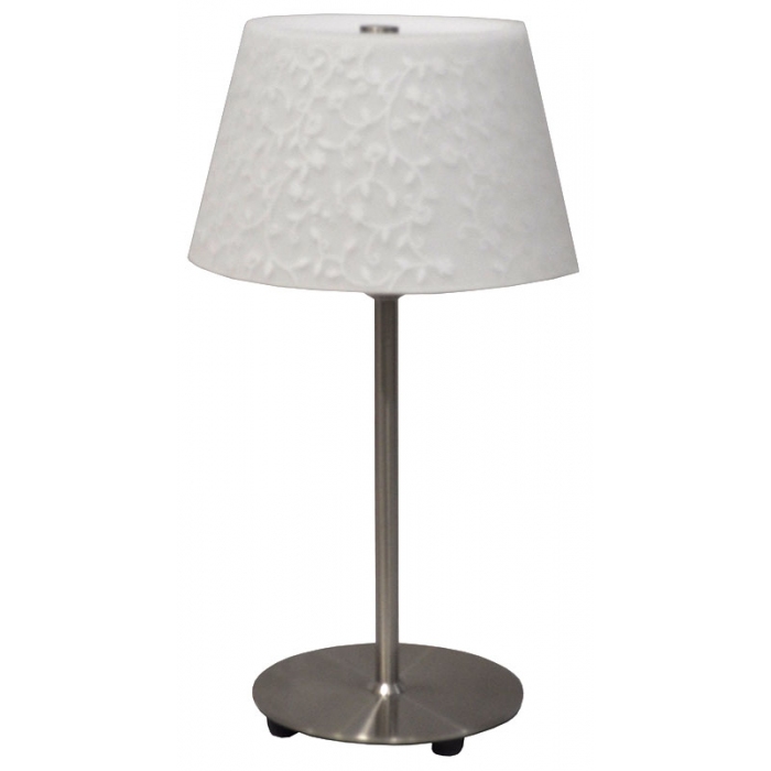 Πορτατίφ μεταλλικό Viokef Με βάση σε ασημί χρώμα Με γυάλινο αλάβαστρο καπέλο σε λευκό/καφέ χρώμα Διακόπτης on/off Διαστάσεις: 20x16εκ. Δέχεται λαμπτήρα Led ή οικονομίας Ε14 εώς 60W ..