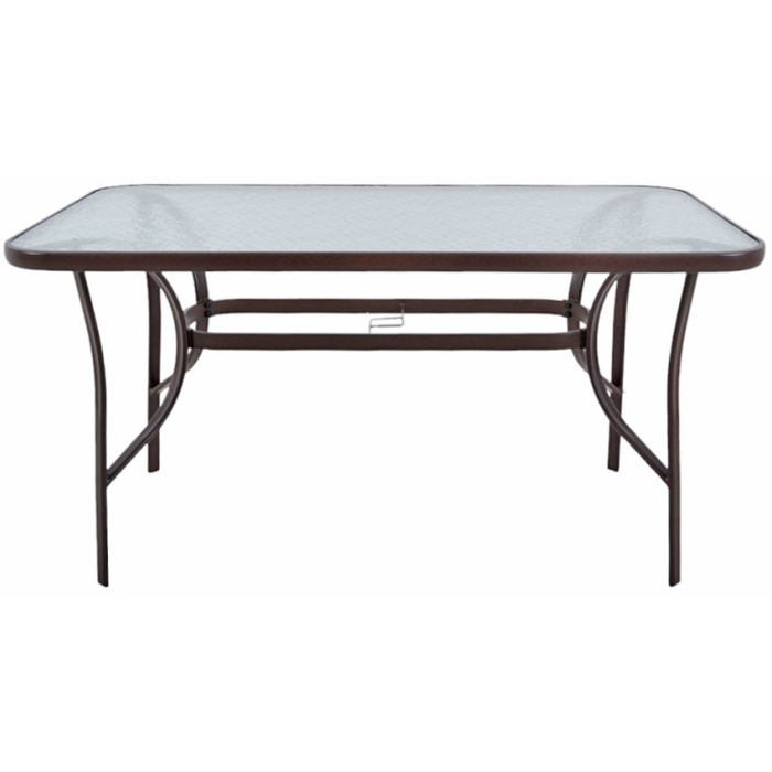 Τραπέζι κήπου ορθογώνιο Ankor Με καφέ μεταλλικό σκελετό και water wave γυάλινη επιφάνεια 5mm. Διαστάσεις: 120x70x70εκ. Διάσταση σωλήνα ποδιών 36x15x0,9mm. Υψηλής ποιότητας μεταλλικό τραπέζι εξωτερικού χώρου στιβαρής κατασκευής και κομψού σχεδιασμού. Αποστέλλεται ασυναρμολόγητο ή συναρμολογημένο. Η υπηρεσία συναρμολόγησης ισχύει για το λεκανοπέδιο Αττικής ή κατόπιν συνεννόησης. Το κατάστημα δεν ευθύνεται για φθορές που μπορεί να προκληθούν κατά την συναρμολόγηση από τον πελάτη. ..
