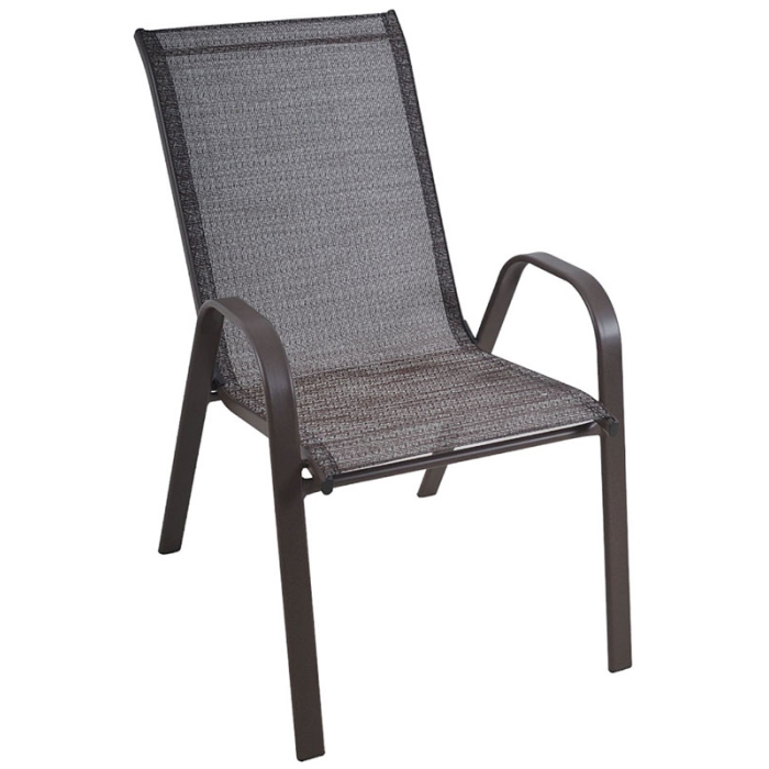 Καρέκλα κήπου Ankor Μεταλλικός σκελετός σε σκούρο καφέ χρώμα Με textline ύφασμα 2x1 σε μπεζ χρώμα μεγάλης αντοχής στον ήλιο και στον χρόνο Διαστάσεις: 54x70x91εκ. Στοιβαζόμενη ..