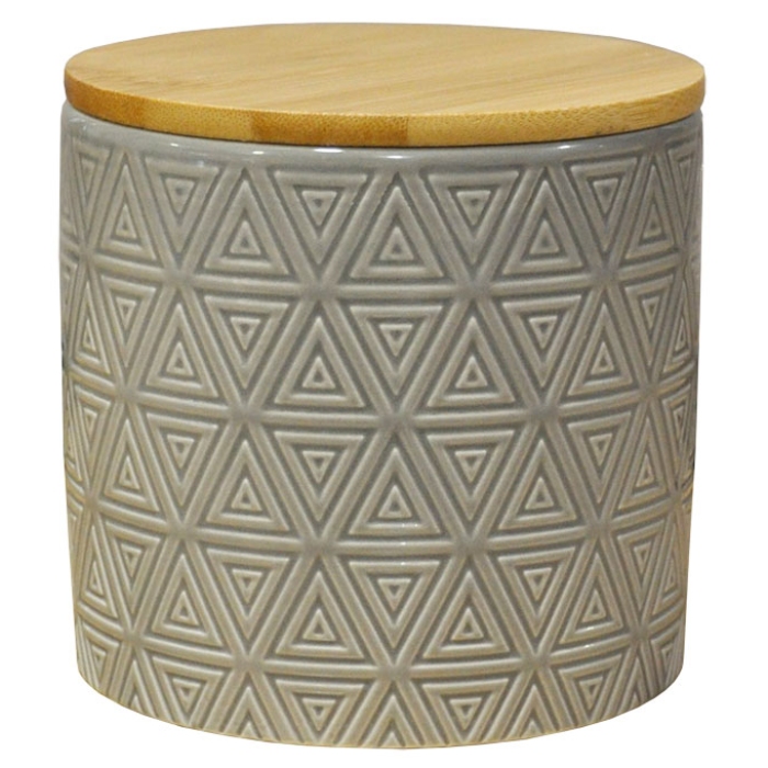Βάζο αποθήκευσης κεραμικό Sidirela Σε γκρι χρώμα Με ξύλινο καπάκι που κλείνει αεροστεγώς Ιδανικό για καφέ, ζάχαρη κ.α. Διαστάσεις: 11x11εκ. ..