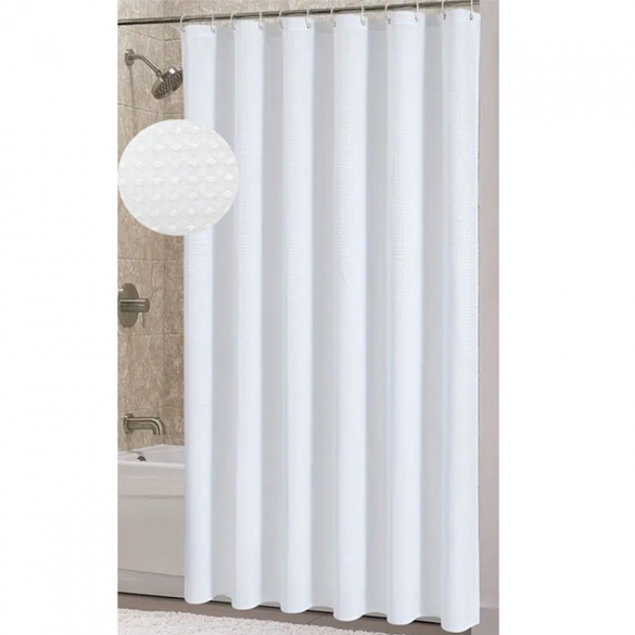 Κουρτίνα μπάνιου αδιάβροχη Ankor Σε λευκό χρώμα Mε ζακάρ διακόσμηση Υλικό: πολυεστέρας 115gsm Διαστάσεις: 180x180εκ. Στην συσκευασία συμπεριλαμβάνονται 12 πλαστικοί κρίκοι ..