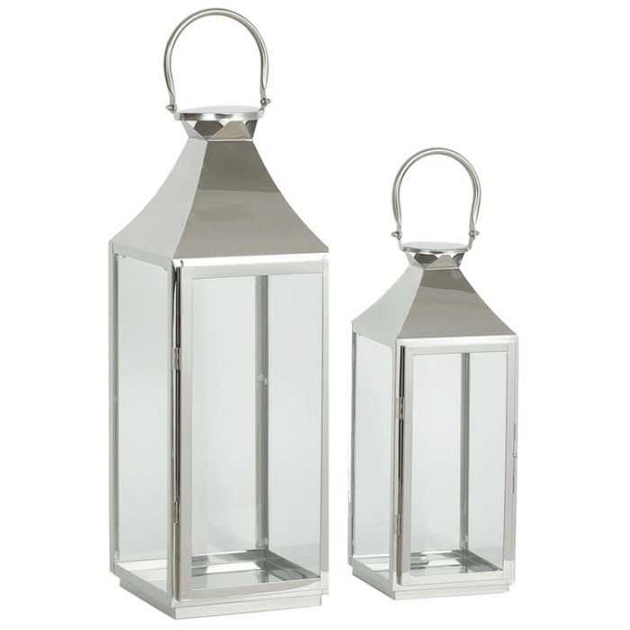 Φανάρια διακοσμητικά ανοξείδωτα σετ 2 τεμαχίων ασημί Ankor 838004