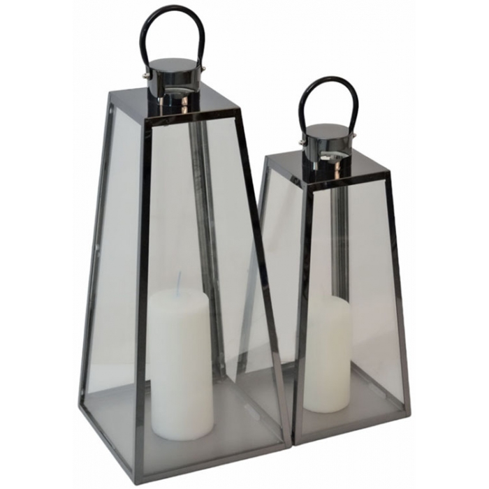 Φανάρια διακοσμητικά ανοξείδωτα σετ 2 τεμαχίων Ankor Σε μαύρο χρώμα Με τζάμι Οι γυάλινες επιφάνειες επιτρέπουν στο φως να διαχέεται ομοιόμορφα Με χειρολαβή για ευκολία στη χρήση Διαστάσεις μεγάλου φαναριού: 18x18x35εκ. Διαστάσεις μικρού φαναριού: 14x14x25εκ. Ιδανικά για εσωτερικούς ή εξωτερικούς χώρους. (Τα κεριά δεν περιλαμβάνονται)..