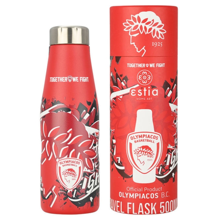 Μπουκάλι θερμός ανοξείδωτο 18/8 Olympiacos B.C. 500ml 7x22.5εκ Estia 00-27162