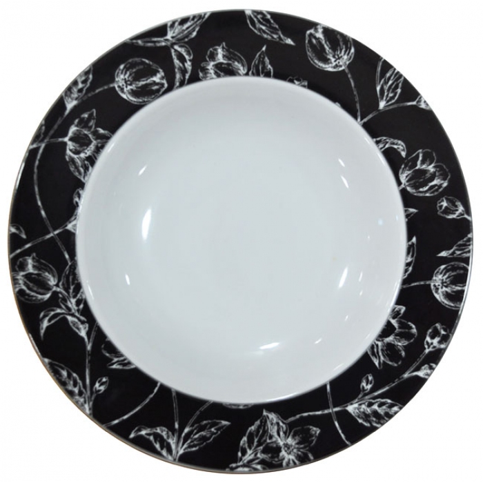Πιάτο βαθύ πορσελάνης Black tulip λευκό-μαύρο 23.5x4εκ AB 661