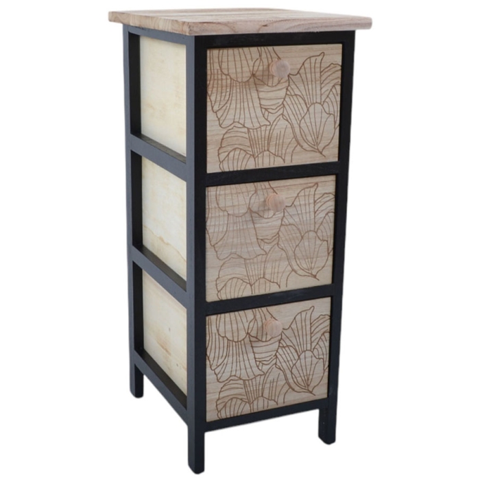 Συρταρίερα ξύλινη Ankor Σε φυσικό μπεζ/μαύρο χρώμα Διακόσμηση με ανάγλυφα λουλούδια στο μπροστινό μέρος Με 4 συρτάρια Διαστάσεις: 26x32x80εκ. Αποτελεί ιδανική λύση αποθήκευσης για κάθε δωμάτιο. ..