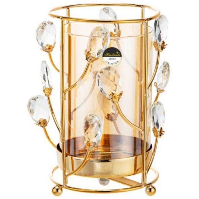 Κηροπήγιο μεταλλικό-γυάλινο χρυσό-μελί 14x19εκ Karvounis GO487M