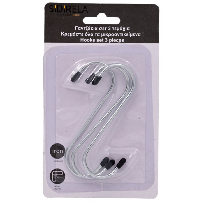 Κρεμαστά γαντζάκια 3 τεμάχια μεταλλικά ασημί 3.5x10εκ Sidirela E-2298