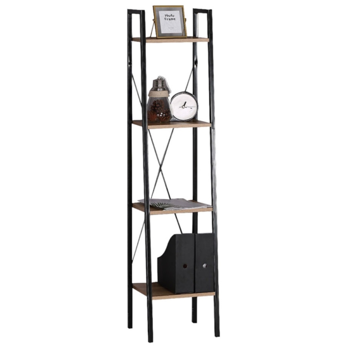 Βιβλιοθήκη-ραφιέρα μεταλλική-ξύλινη μαύρο-natural 34x32x148εκ Ankor 844197