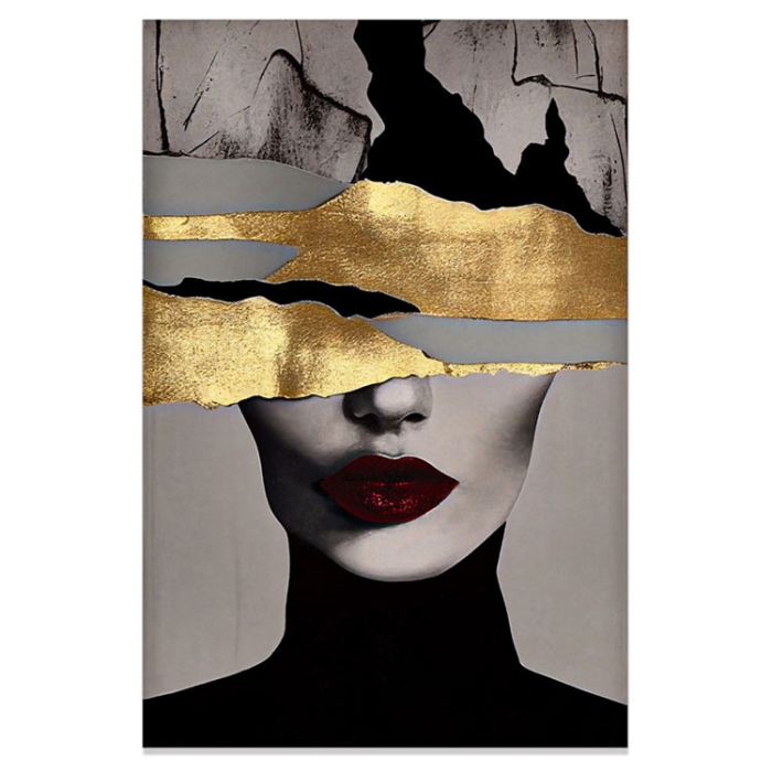 Πίνακας ελαιογραφία σε καμβά printed Γυναίκα μαύρο-χρυσό 60x90εκ Ankor 843930