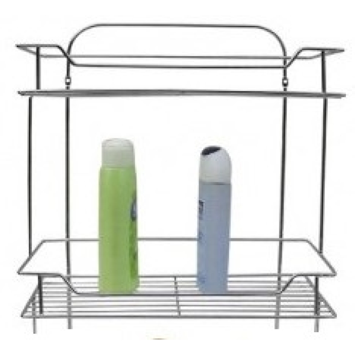 Ραφιέρα μπάνιου γωνιία μεταλλική Ankor Σε ασημί χρώμα Με 2 θέσεις Διαστάσεις: 29x21x38εκ. Με δυνατότητα να κρεμαστεί και στον τοίχο..