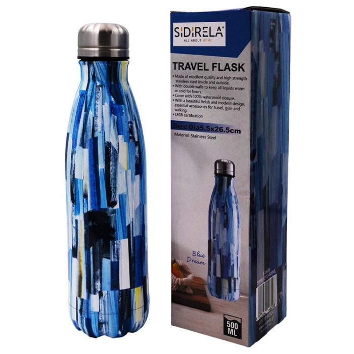 Μπουκάλι θερμός ανοξείδωτο Travel Blue dream 500ml Sidirela E-4609