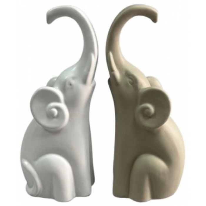 Φιγούρες σετ 2 τεμαχίων κεραμικές Ελεφαντάκια λευκό-μπεζ Karvounis K9477C