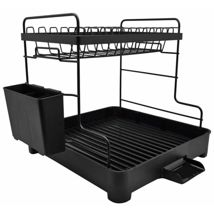 Πιατοθήκη νεροχύτη μεταλλική Newest Διώροφη Σε μαύρο χρώμα Διαστάσεις: 65x31.5x52εκ. Διαθέτει διαμερίσματα για ποτήρια, πιάτα, μαχαιροπήρουνα, υγρό πιάτων, σφουγγάρι. Τοποθετείται εύκολα και με σταθερότητα χάρη στις βεντούζες που έχει στα πόδια. Είναι ιδανική για να αφήνετε τα πιάτα να στεγνώσουν γρηγορότερα πριν από την αποθήκευση, πάνω από το νεροχύτη και χωρίς να στάζει νερό στον πάγκο της κουζίνας. ..