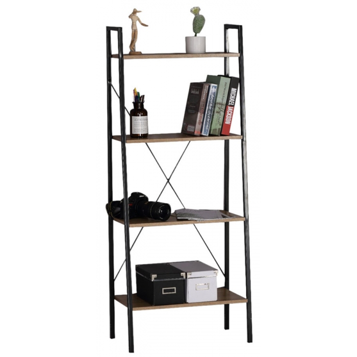 Βιβλιοθήκη-ραφιέρα μεταλλική-ξύλινη μαύρο-natural 60x32x148εκ Ankor 844203