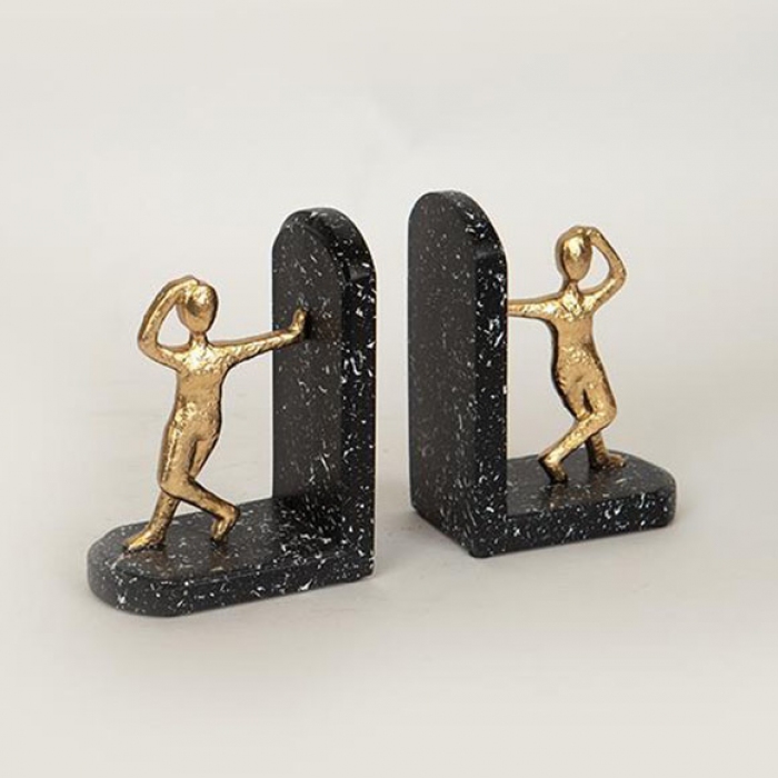 Βιβλιοστάτες σετ 2 τεμαχίων πολυρεσίνης μαύρο-χρυσό 21.7x6.5x14.7εκ Estheti 752-19014