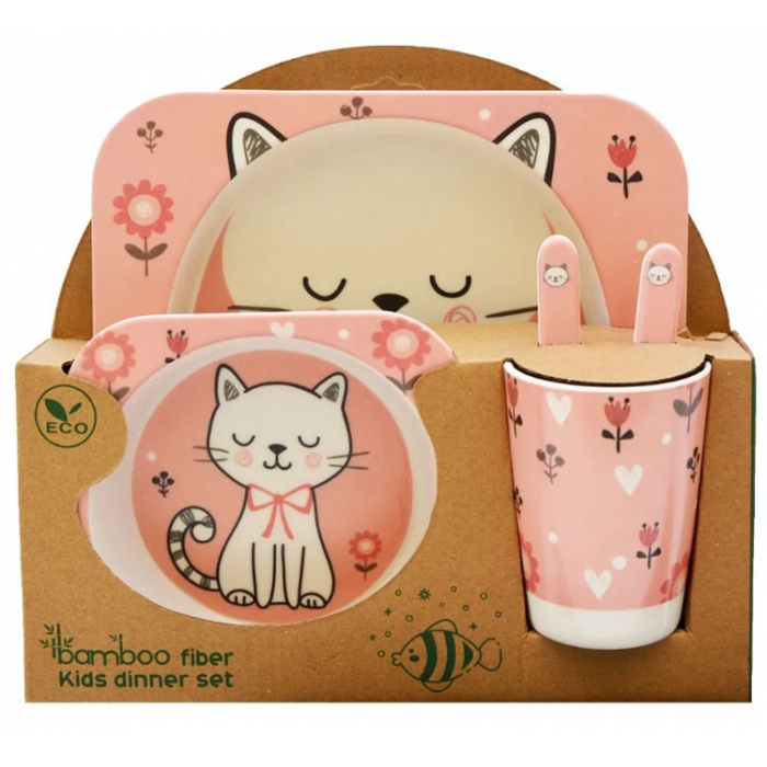 Σετ πρωινού παιδικό μπαμπού 5 τεμαχίων Γάτα Δωρόσημο 15138