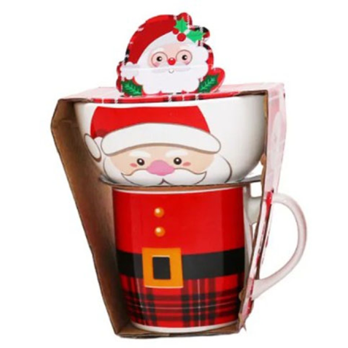 Κούπα-Μπωλ σετ 2 τεμαχίων κεραμικό Santa κόκκινο Δωρόσημο 16933