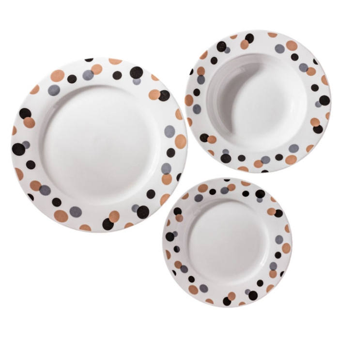 Πιάτα πορσελάνης σετ 18 τεμαχίων Πουά καφέ-γκρι Ankor R2408-18