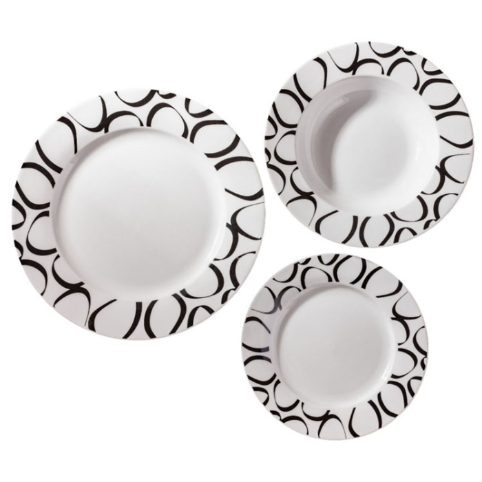 Πιάτα πορσελάνης σετ 18 τεμαχίων Κύκλοι λευκό-μαύρο Ankor R2409-18