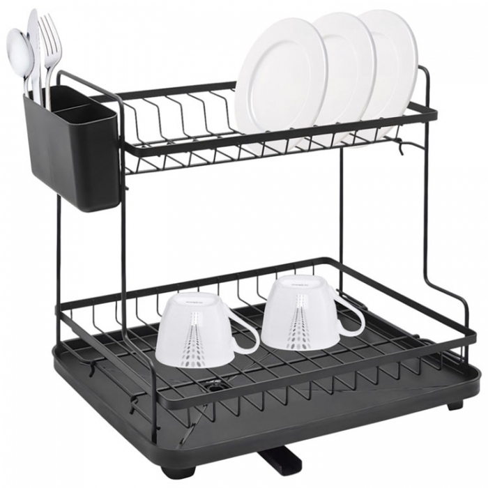 Πιατοθήκη 2όροφη μεταλλική Ankor Σε μαύρο/γκρι χρώμα 17 θέσεις για στέγνωμα πιάτων Επιφάνεια στεγνώματος: 45x31εκ. Διαστάσεις: 50x24x34εκ. Διαθέτει πλαστική κουταλοθήκη και πλαστικό δίσκο ..