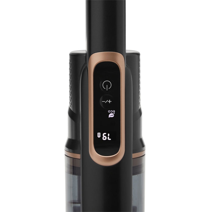 Είδος τεχνολογίας σκουπίσματος: Χωρίς σακούλα Τύπος τεχνολογίας ενέργειας: Χωρίς καλώδιο Ισχύς: 140W Τάση: 33.3V Αριθμός βαθμίδων ισχύος: 4 Λυχνία LED για ένδειξη λειτουργίας Αυτονομία: Έως 70 λεπτά Αυτονομία στη βαθμίδα ECO: 70 λεπτά Αυτονομία στη βαθμίδα HIGH: 40 λεπτά Αυτονομία στη βαθμίδα MAX: 20 λεπτά Αυτονομία στη βαθμίδα BOOST: 5 λεπτά Αριθμός συμπεριλαμβανομένων μπαταριών: 1 Λυχνία LED αυτονομίας Αποσπώμενη μπαταρία Χρόνος επαναφόρτισης: 4 ώρες Φόρτιση: Βύσμα φόρτισης στο σώμα της σκούπα..