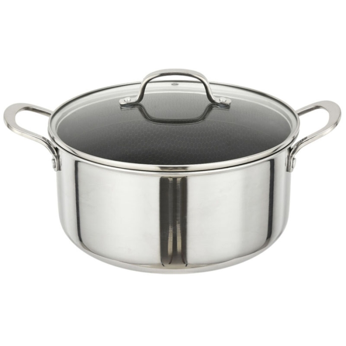 Χύτρα ανοξείδωτη 18/8 Ankor Tri-Ply τριών στρώσεων με αντικολλητική επίστρωση Προσφέρει αντοχή στις γρατζουνιές, ομοιόμορφη κατανομή θερμότητας και υγιεινό μαγείρεμα Ανοξείδωτο ατσάλι εσωτερικά και εξωτερικά του σκεύους με πυρήνα αλουμινίου για εξαιρετική θερμική αγωγιμότητα Αντικολλητική επίστρωση με επαναστατικό εξάγωνο μοτίβο χαραγμένο με λέιζερ Με γυάλινο καπάκι Διάμετρος: 28εκ. Διάμετρος πάτου: 25εκ. Βάθος χύτρας: 13εκ. Πάχος: 2.5mm Κατάλληλη για πλυντήριο πιάτων Κατάλληλη για όλες τις εστί..