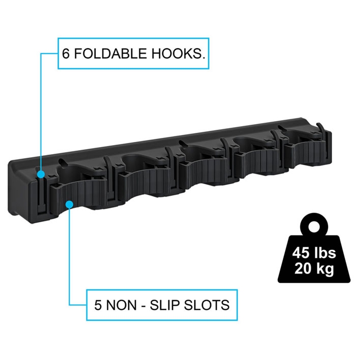 Βάση για σκούπες επιτοίχια 5 θέσεων μαύρη 46.5x7x6.5εκ Ankor 851072