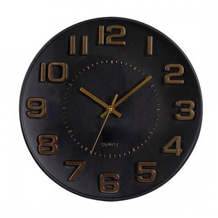 Ρολόι τοίχου πλαστικό μαύρο-χρυσό 30εκ Estheti 813-30055