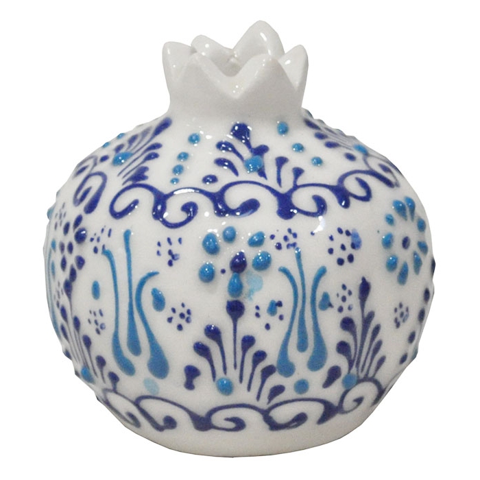 Ρόδι διακοσμητικό κεραμικό Pol Σε λευκό/μπλε χρώμα Σχέδιο με λουλούδια Διαστάσεις: 9x10εκ. ..