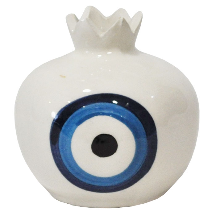 Ρόδι διακοσμητικό κεραμικό Pol Σε λευκό/μπλε χρώμα Σχέδιο με ματάκι Διαστάσεις: 9x10εκ. ..
