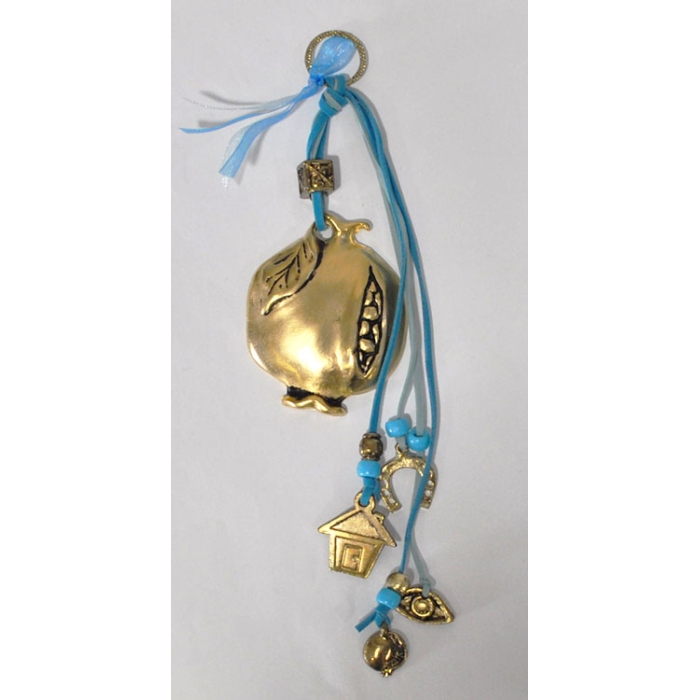 Γούρι κρεμαστό μεταλλικό Ρόδι χρυσό-γαλάζιο 6.5x25εκ Marten 102-0498