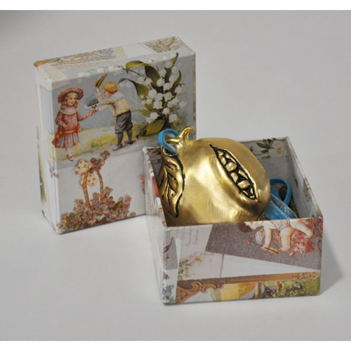 Ρόδι κεραμικό Marhome Σε αντικέ ασημί χρώμα Λεπτομέρεια με κορδέλες και ματάκι Διαστάσεις: 6.5x6.5εκ...