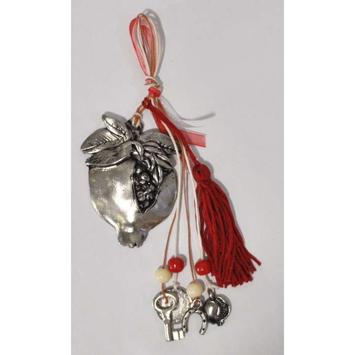 Γούρι κρεμαστό μεταλλικό Ρόδι ασημί-κόκκινο 6x19εκ Marten 103-0499