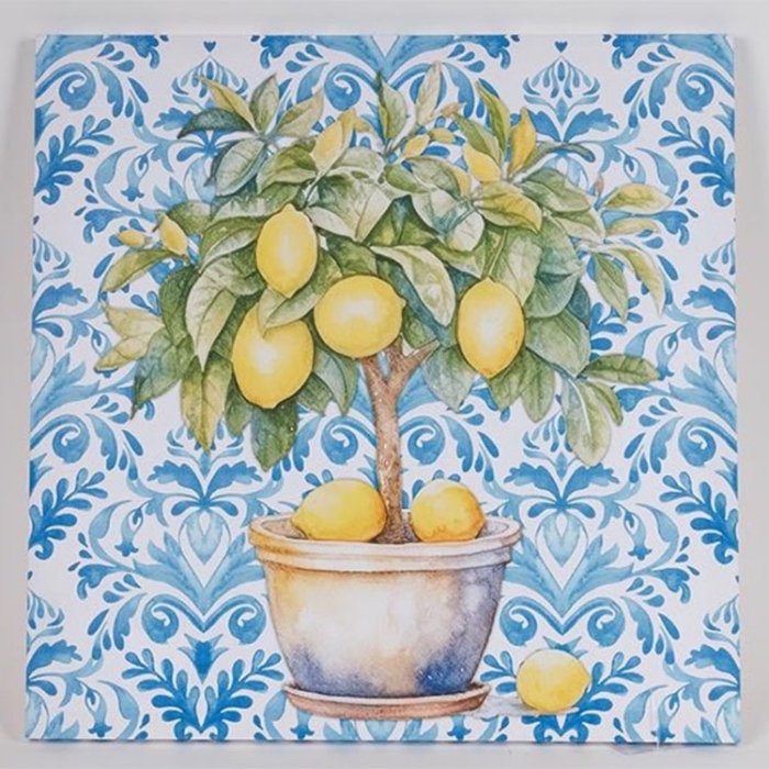 Πίνακας σε καμβά τυπωμένος Estheti Με απεικόνιση λεμονιάς Σε μπλε/λευκό/κίτρινο χρώμα Διαστάσεις: 50x2x50εκ...