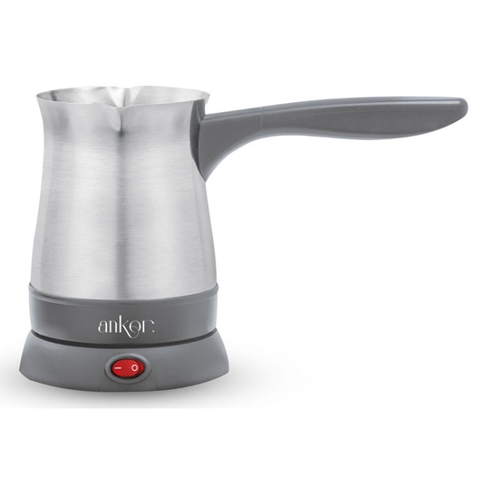 Ηλεκτρικό μπρίκι καφέ Ankor Σε γκρι/μαύρο χρώμα Ωφέλιμη χωρητικότητα: 250ml Συνολική χωρητικότητα: 400ml Ισχύς: 800-1000W 1-4 φλυτζάνια ελληνικού καφέ Μέγιστος χρόνος προετοιμασίας: 1 λεπτό Καλυμμένη αντίσταση Ανοξείδωτη εσωτερική βάση μπρικιού Ασφάλεια υπερχείλισης Αποσπώμενη βάση Δυνατότητα περιστροφής 360 μοιρών πάνω στη βάση Φωτεινός διακόπτης on/off Διαθέτει διπλό στόμιο για δεξιόχειρες και αριστερόχειρες..
