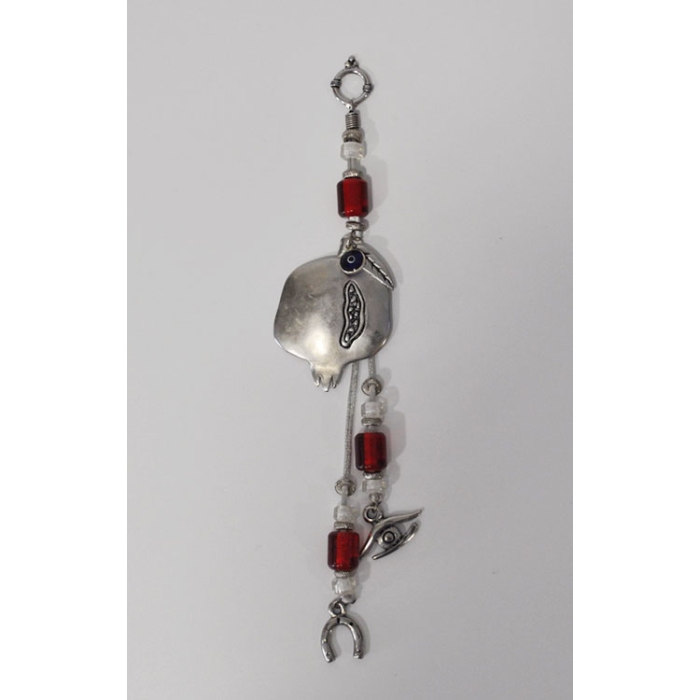 Γούρι κρεμαστό μεταλλικό Ρόδι ασημί-κόκκινο 4.5x22.5εκ Φυσαλίς Γ/21