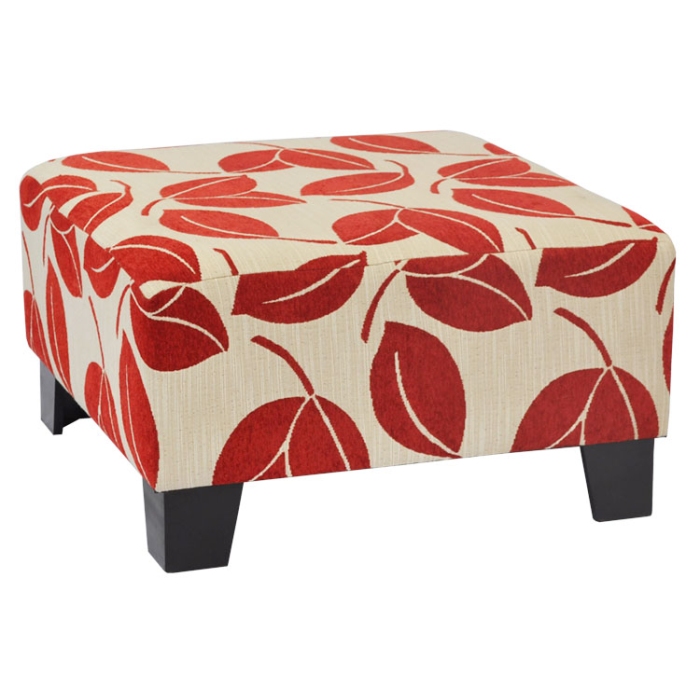 Σκαμπώ υφασμάτινο-ξύλινο Φύλλα κόκκινο-εκρού 61x61x35εκ Sinialo 1900718
