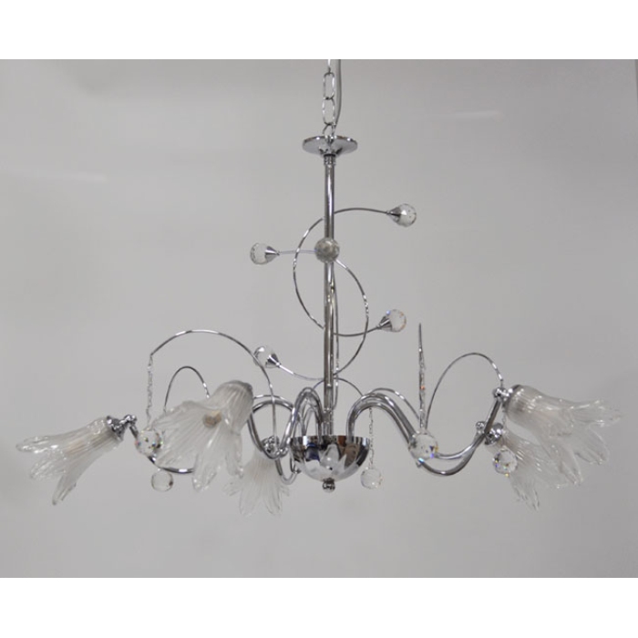 Φωτιστικό οροφής 5φωτο μεταλλικό Sinialo Σε ασημί χρώμα Διακοσμημένο με λευκά γυαλιά και διάφανους κρυστάλλους Με αλυσίδα Το ύψος μπορεί να ρυθμιστεί από 75 έως 115εκ. Διαστάσεις: 65x65x115εκ. Δέχεται λαμπτήρες οικονομίας ή Led 8xG9 έως 40W (δεν συμπεριλαμβάνονται) ..