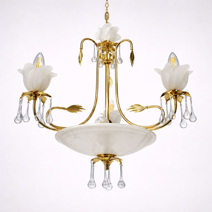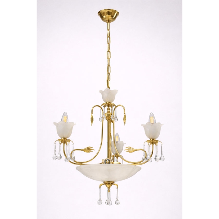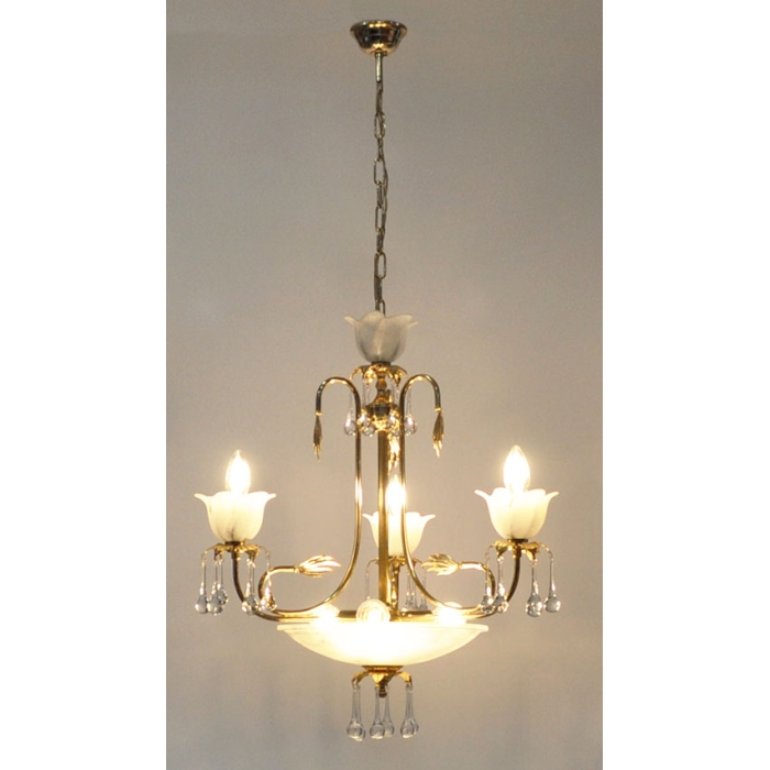 Φωτιστικό οροφής 5φωτο μεταλλικό Sinialo Σε οξυντέ χρώμα Διακοσμημένο με λευκά γυαλιά και διάφανους κρυστάλλους Με αλυσίδα Το ύψος μπορεί να ρυθμιστεί από 64 έως 100εκ. Διαστάσεις: 65x100εκ. Δέχεται λαμπτήρες οικονομίας ή Led 5xE14 έως 40W (δεν συμπεριλαμβάνονται) ..