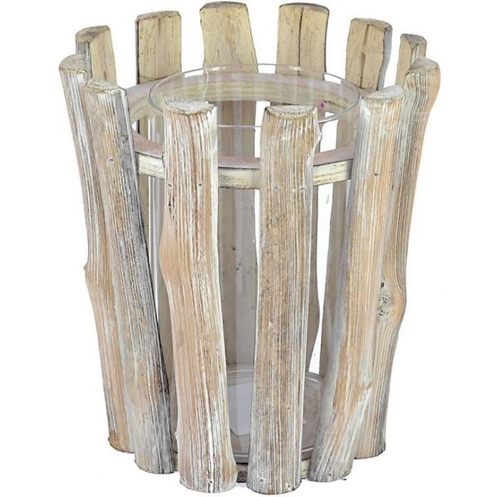 Κηροπήγιο ξύλινο/γυάλινο Natural 17εκ Inart 3-70-454-0018
