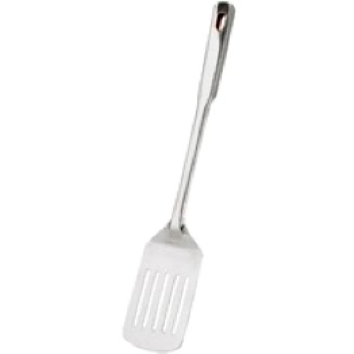 Σπάτουλα κατασκευασμένη από ανοξείδωτο ατσάλι. Στην άκρη της λαβής υπάρχει οπή για στερέωση στον τοίχο ή σε ειδικό stand εργαλειών κουζίνας. ..